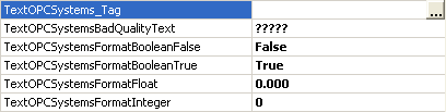 Refer to OPCControls help for all properties and members of the OPC Controls.NET components. All properties can be assigned in code; however no programming is required to use the properties.